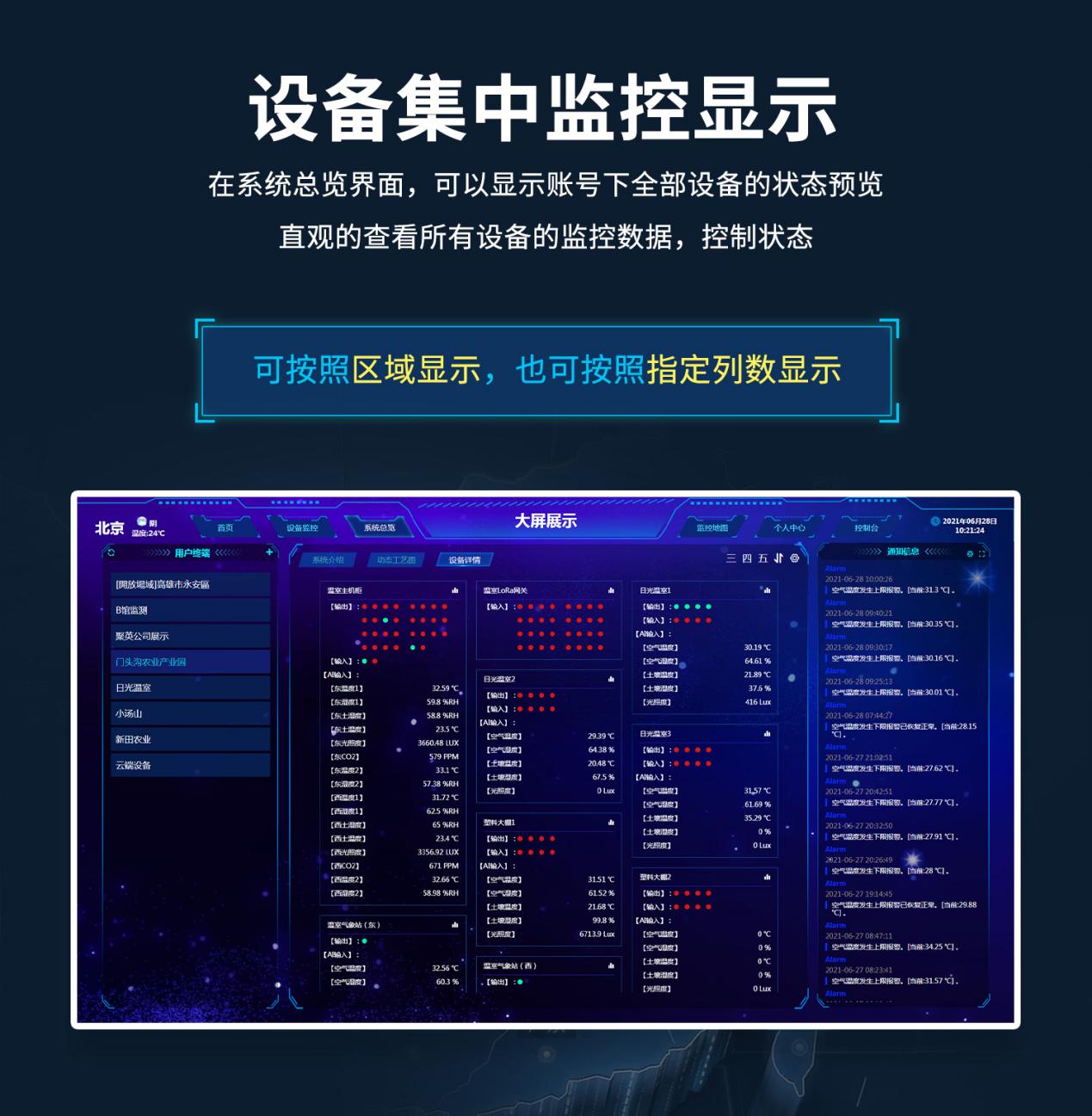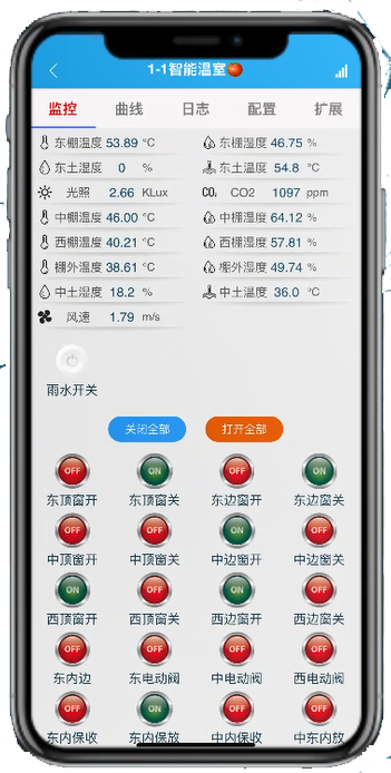 搭建“大棚环境监控界面”,关联50套温湿度传感器、20套CO₂传感器,设置“温度>30℃→开启天窗”“CO₂
