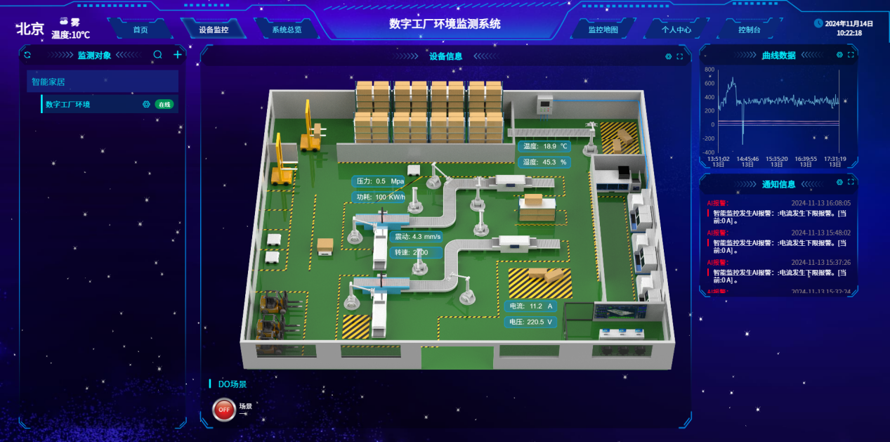 物联网平台的组态应用,不仅能快速搭建界面,还具备“实时监测、智能报警、数据分析、灵活控制”四大核心能力,满足环境监控的全流程需求。