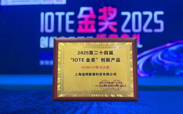 实力见证,途鸽科技全球eSIMIoT解决方案凭借领先性、创新性、突出市场表现,荣获国际物联网展“IOTE金奖”创新产品大奖